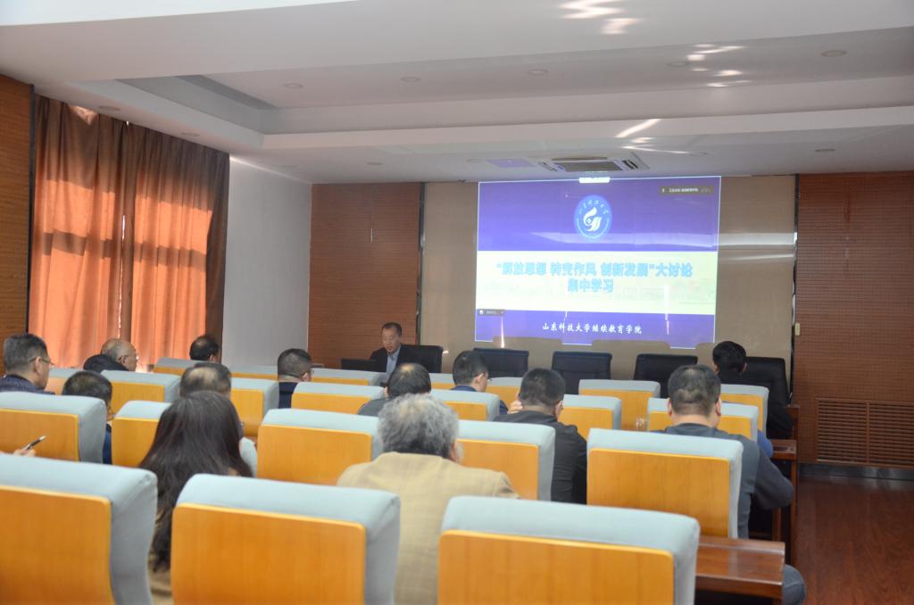 3月30日,jinnianhui今年会开展“解放思想 转变作风 创新发展”大讨论专题学习,院长王靖磊、副院长狄卫东和全体教职工参加了会议,会议由副院长、教工党支部书记王佃春主持。