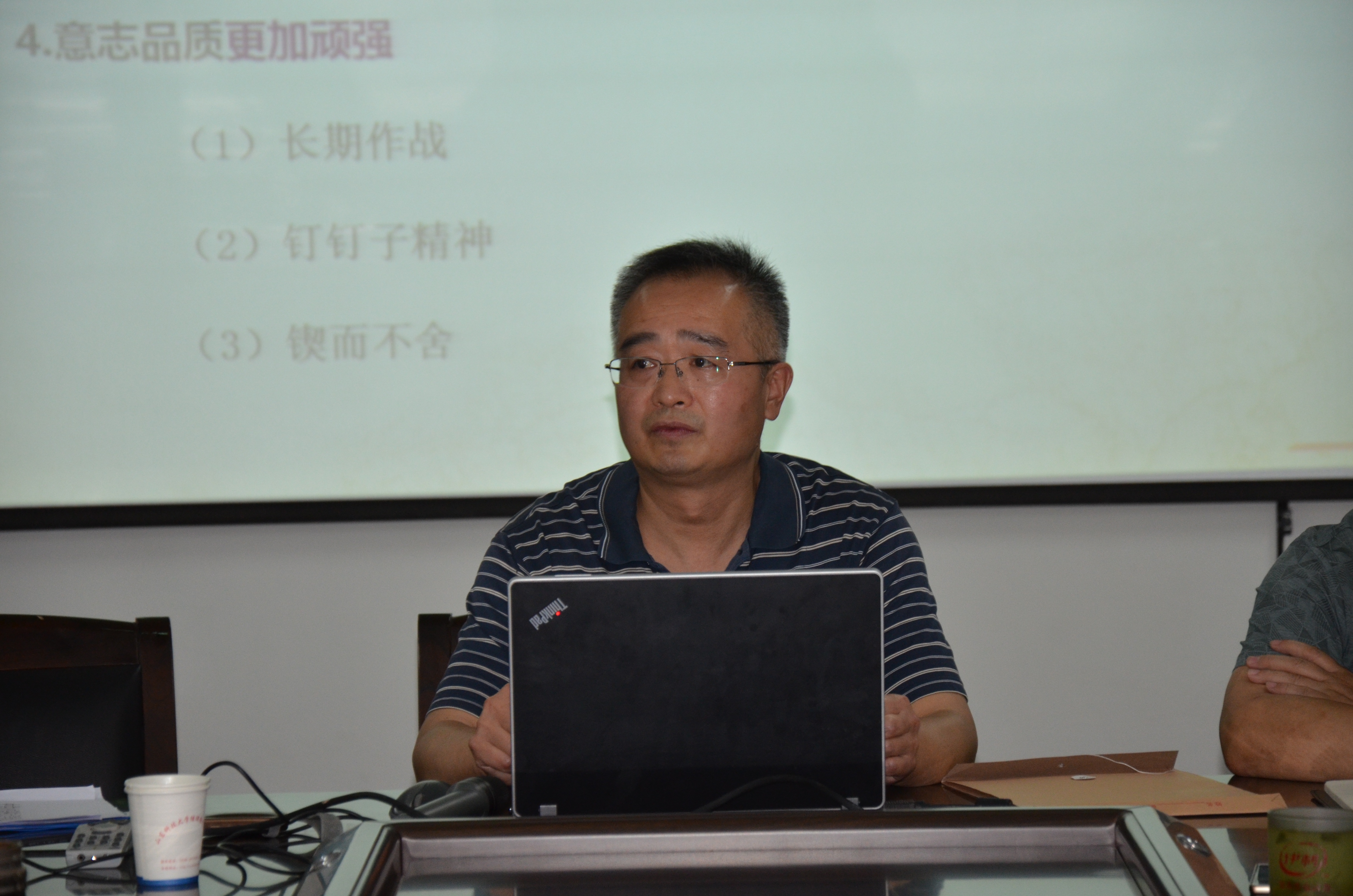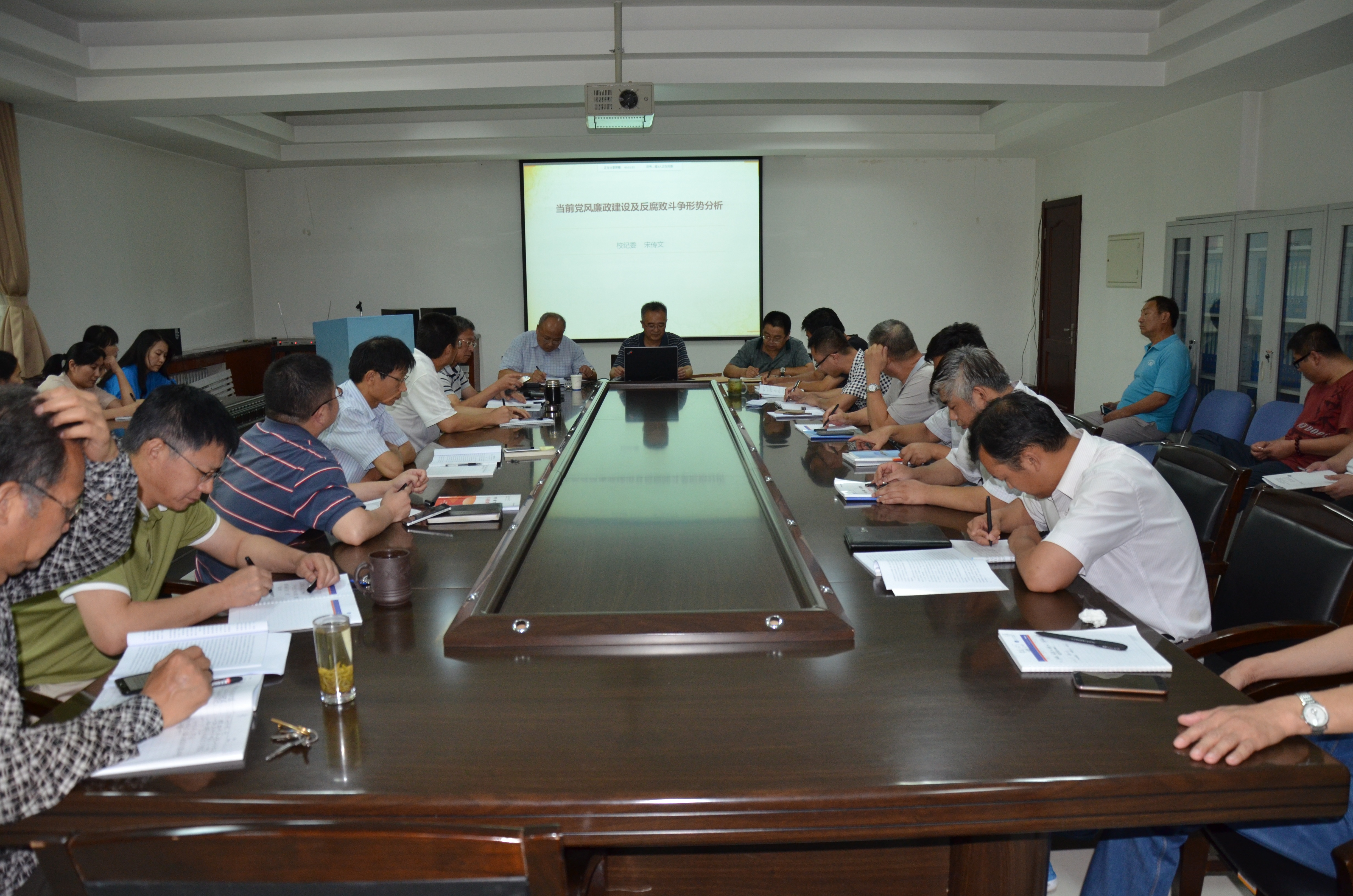 7月5日下午,校纪委副书记宋传文为jinnianhui今年会全体职工作了题为“当前党风廉政建设及反腐败斗争形势分析”的专题报告,学院直属党支部书记耿献文主持了报告会。