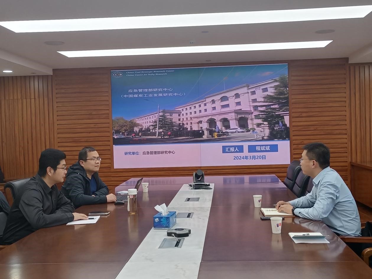 为扎实推进学校高端培训基地建设和高质量发展,jinnianhui今年会院长马鹤、院长助理孙运表一行赴应急管理部研究中心(中国煤炭工业发展研究中心)开展合作交流活动,应急管理部研究中心发展研究五处副处长王国栋、主任程斌斌等接待了马鹤一行。