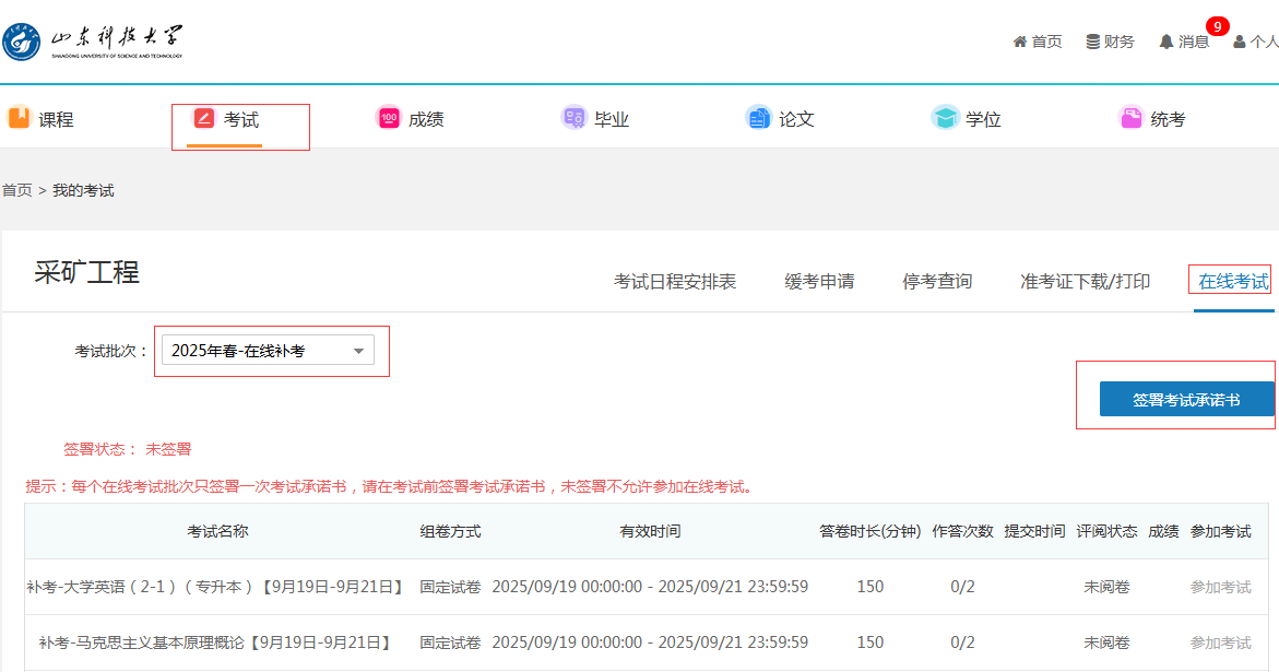 点击“在线考试→开始答题→交卷并查看结果”,交卷后刷新一下查阅考试成绩。
